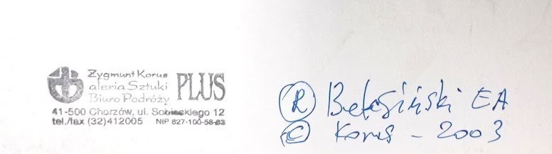 The poster from the collection of Anna and Piotr Dmochowski. On the back, the signature of Piotr Dmochowski, no., stamps of Association pour la promotion de l’oeuvre de Beksinski and Galerie Dmochowski, and handwritten annotation by Piotr Dmochowski in French “Orignal vintage.”