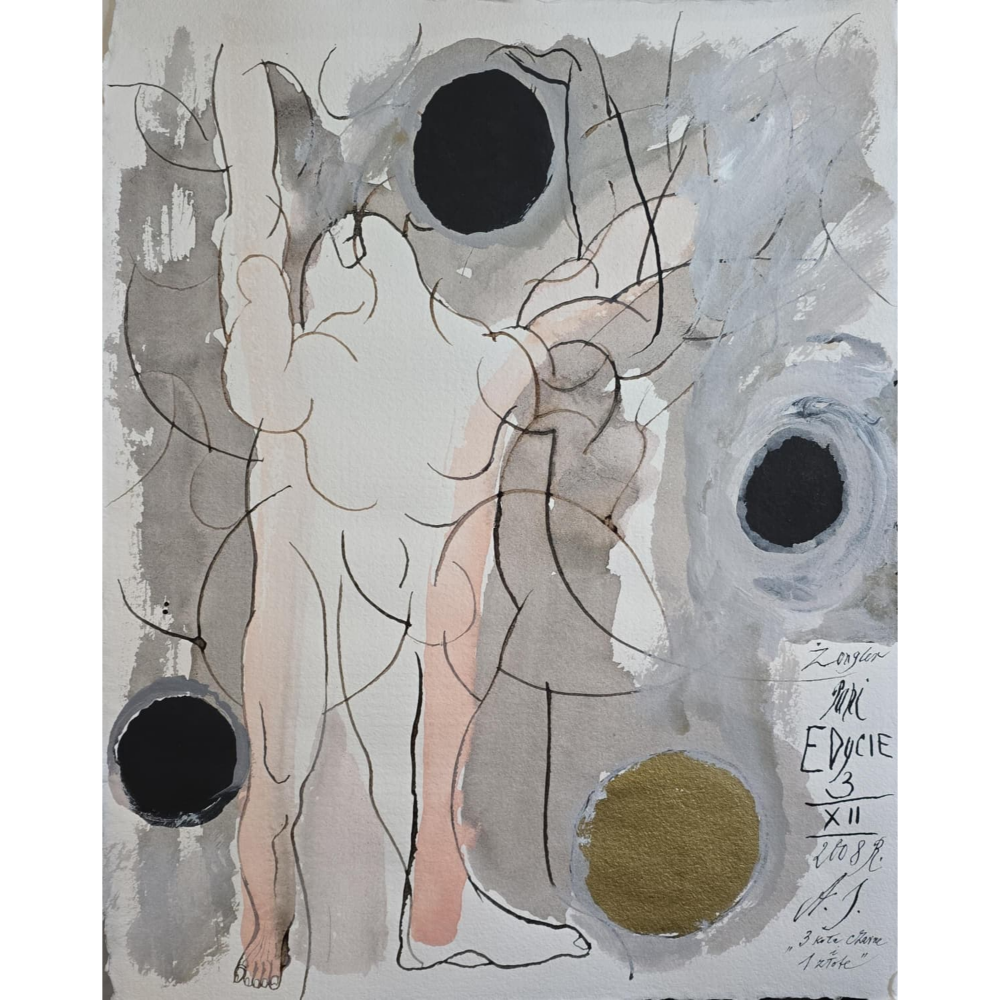 Sygn. i opis. p.d.: “Żongler | Pani | EDYCIE | 3 | XII | 2008 | A.S. | 3 koła czarne | i 1 złote”