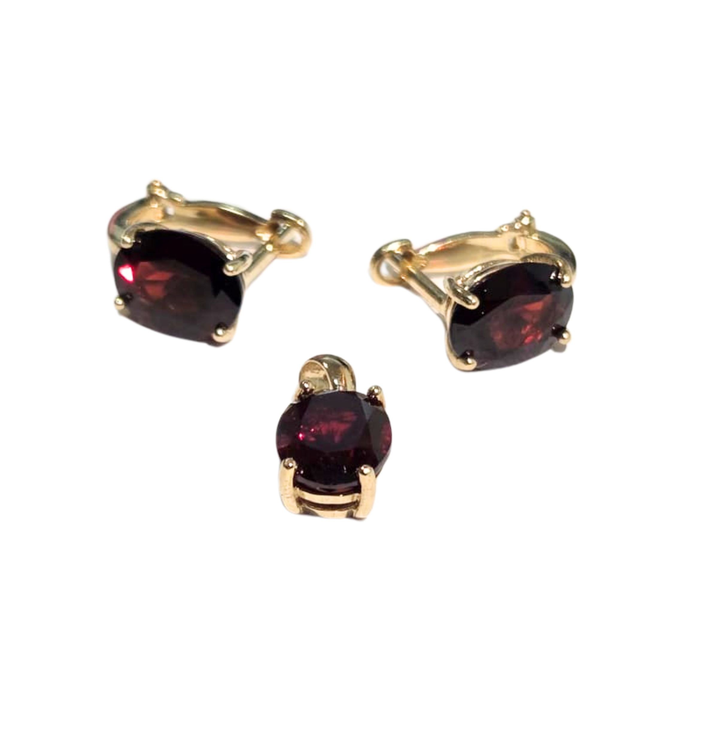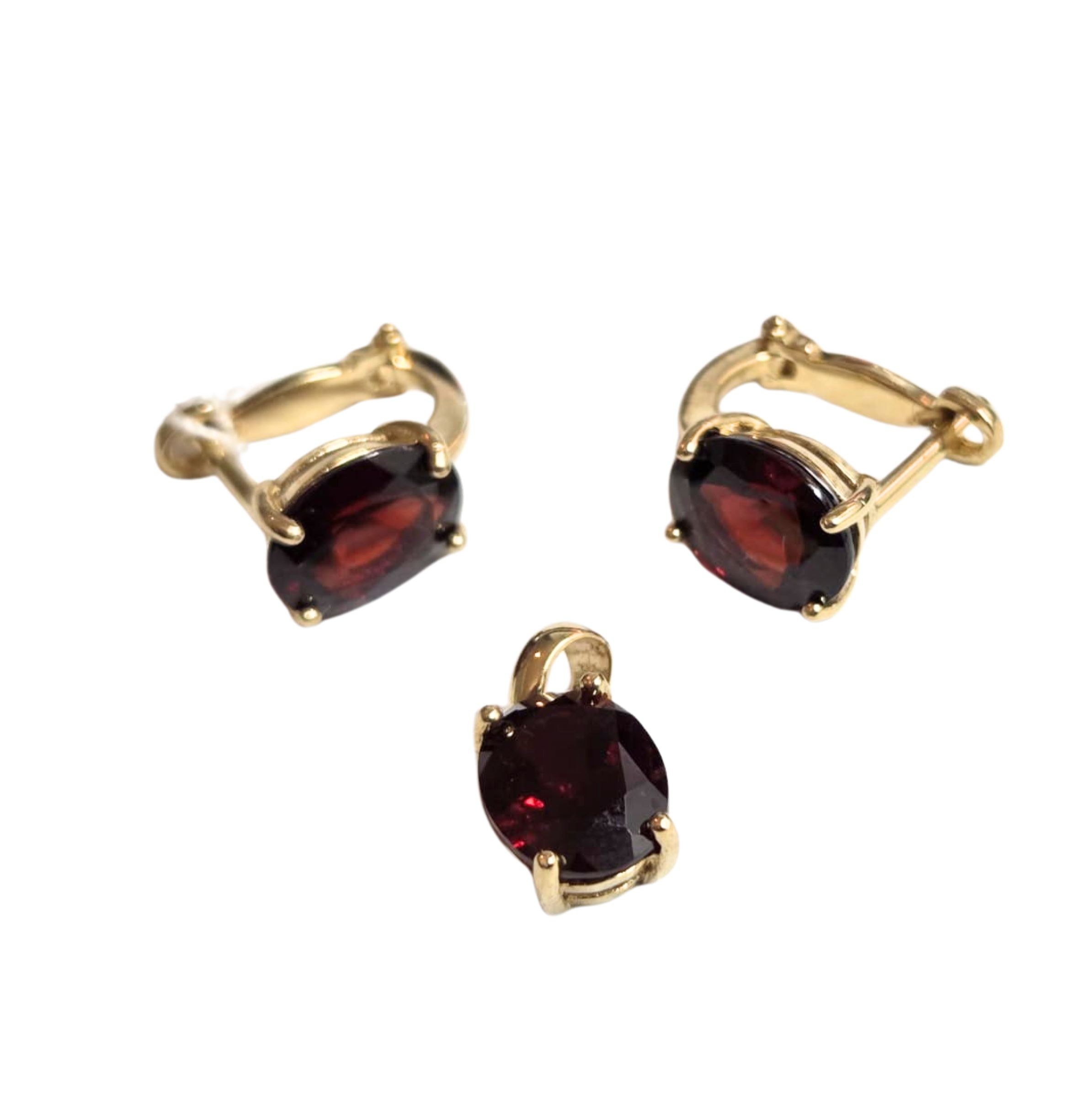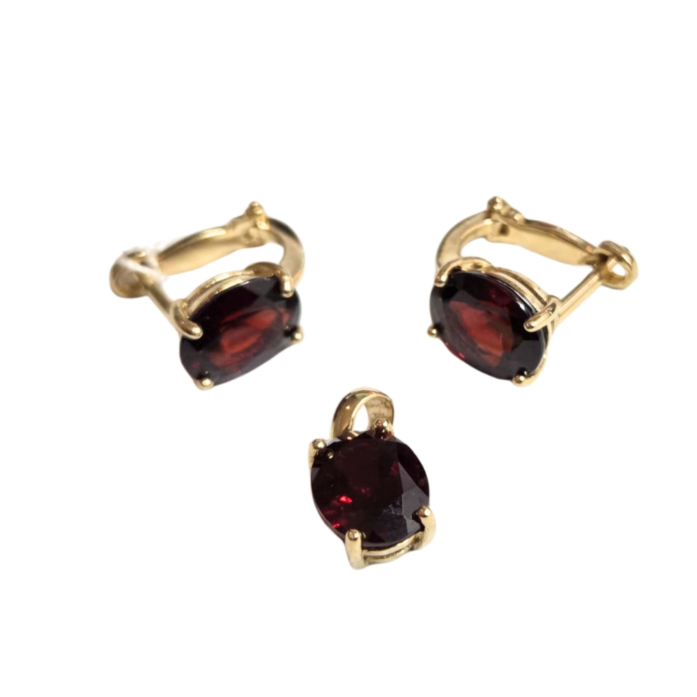 Komplet złotej biżuterii z granatem (585)