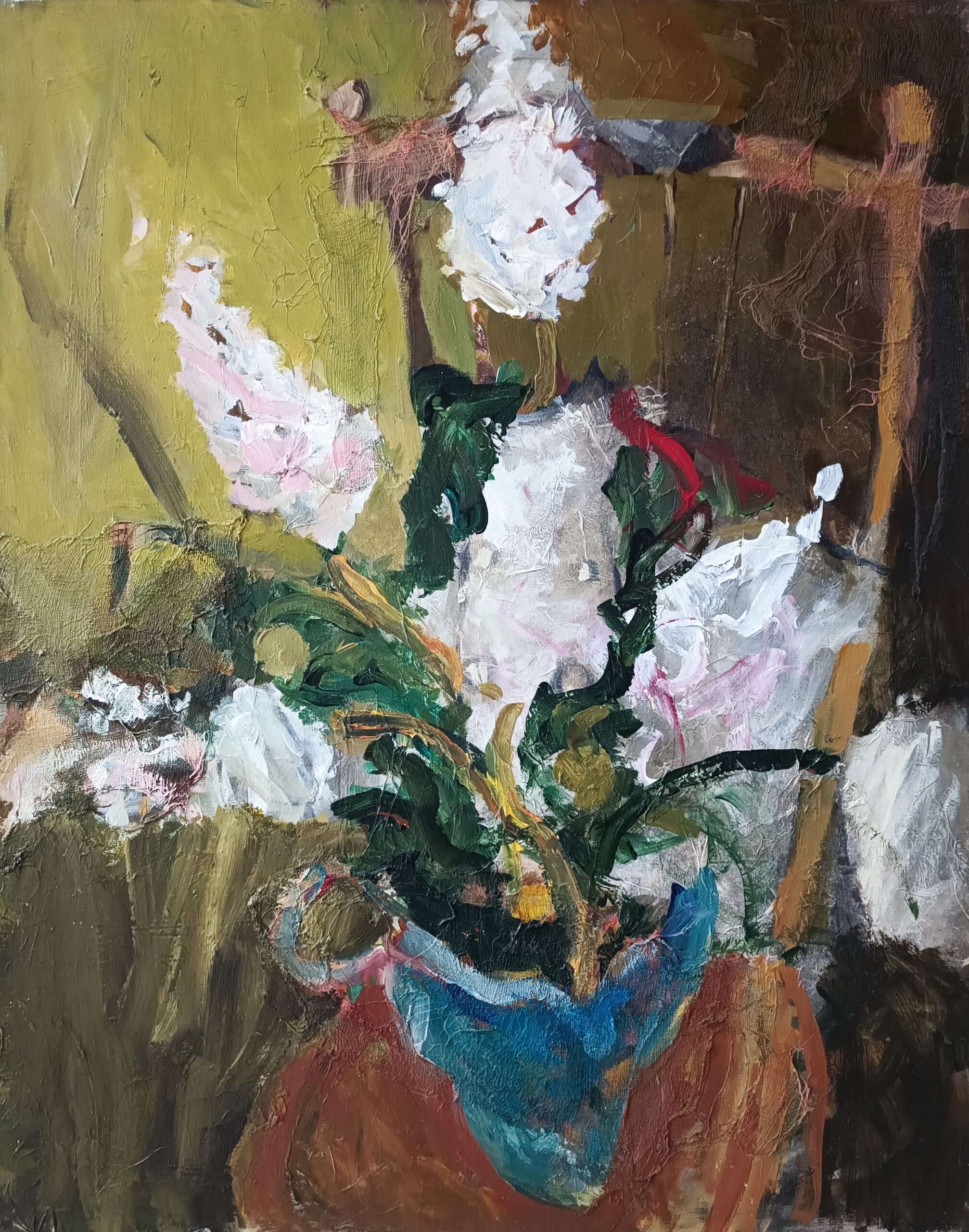 Piotr Strelnik (ur. 1956), Białe bzy na krześle, 1999