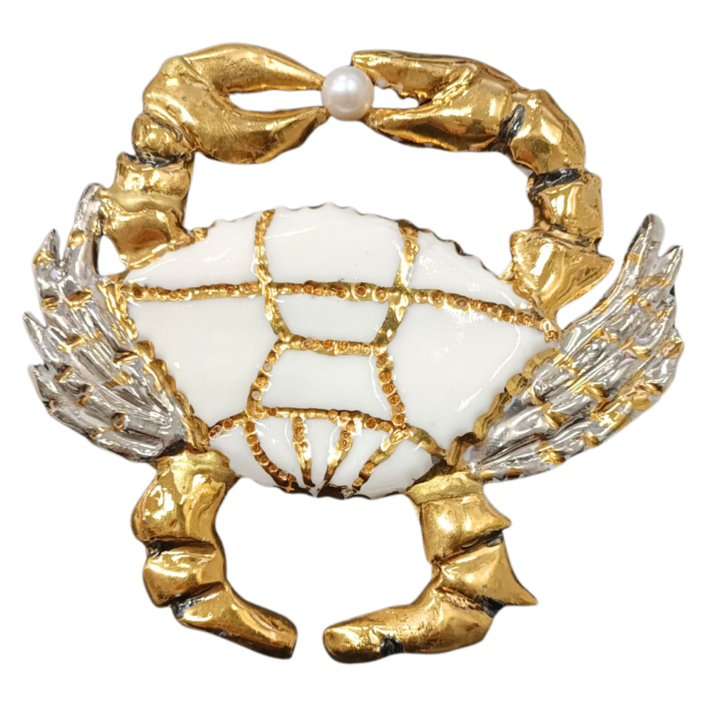 Porcelanowa broszka krab (złoto 24 k, perła), unikat, Romana Bielecka